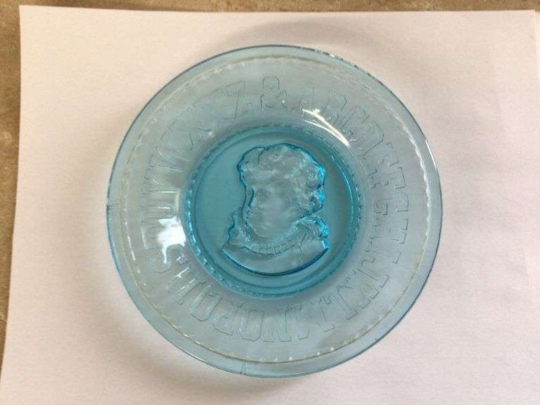 LOT 16-041 - BLUE GLASS CHILD'S ABC PLATE