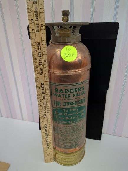 BADGER'S WATER FILLED CARTRIDGE TYPE FIRE EXTINGUISHER BELL SYSTEM KS-6878 COPPER