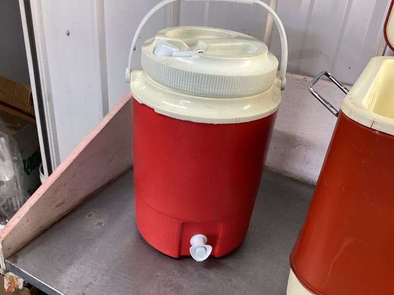 VINTAGE THERMOS COOLER AND RUBBERMAID DRINK COOLER/DISPENSER
