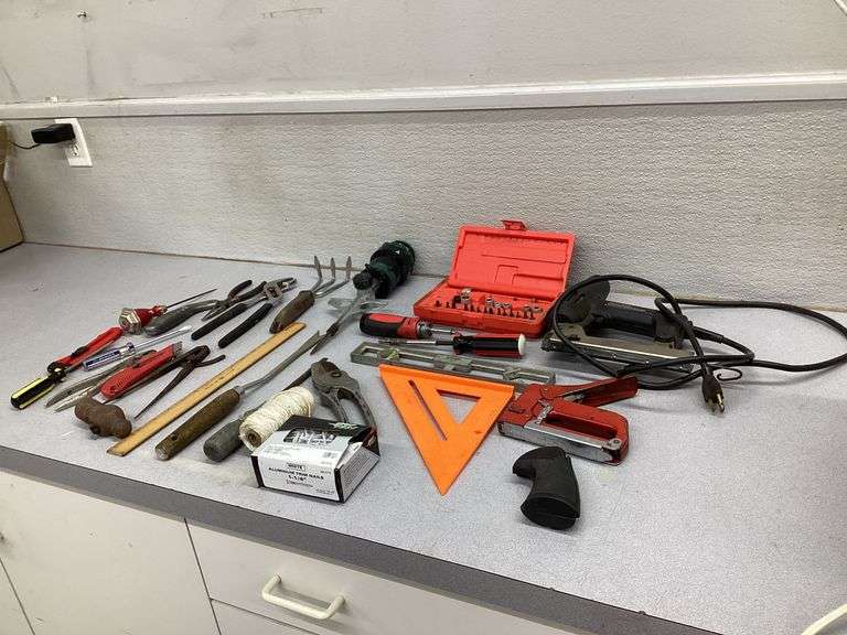 LOT 43-074 - BLACK AND DECKER ELECTRIC BRAD NAILER AND OTHER ASSORTED TOOLS