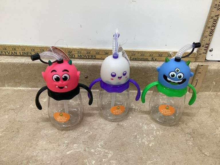 LOT 43-262 - 3 NEW LIGHT UP CUPS W/STRAWS