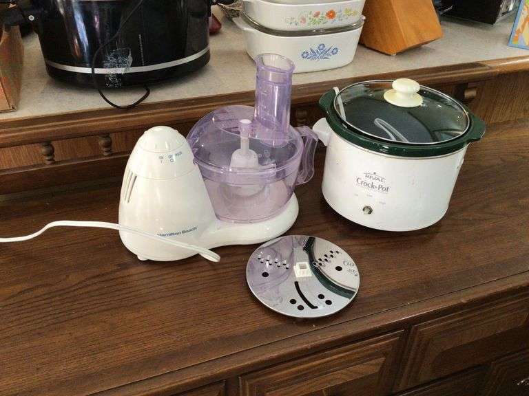SMALL CROCKPOT AND HAMILTON BEACH FOOD PROCESSOR(WORKS)