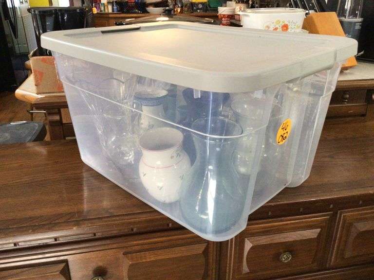 LOT 46-082 - VARIOUS VASES IN TOTE W/LID