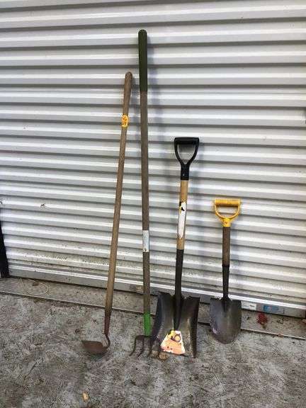 LOT 46-128 - 2 SHOVELS, HOE, AND CULTIVATOR