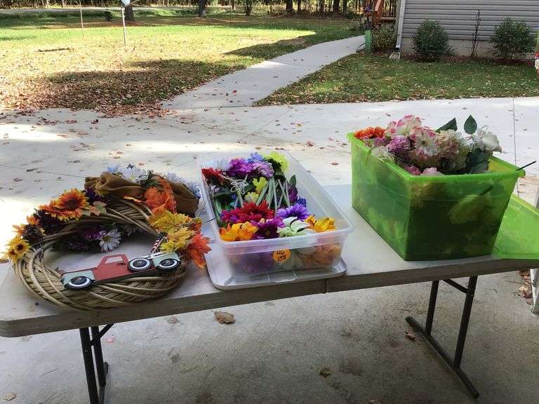 ARTIFICIAL FLOWERS AND WREATHS IN 2 TOTES W/LIDS