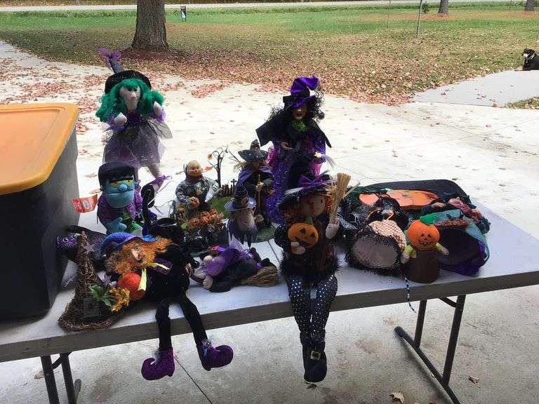 DEPT 56 LIGHT UP GRAVEYARD, WITCH HATS, DECORATIVE WITCHES, AND MORE IN LARGE TOTE W/LID