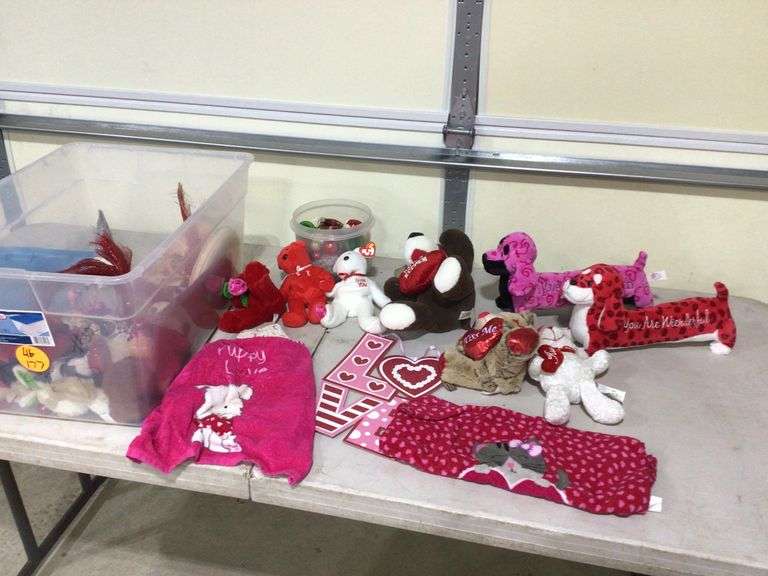 LOT 46-177 - MISC VALENTINES DAY DECORATIONS IN TOTE W/LID
