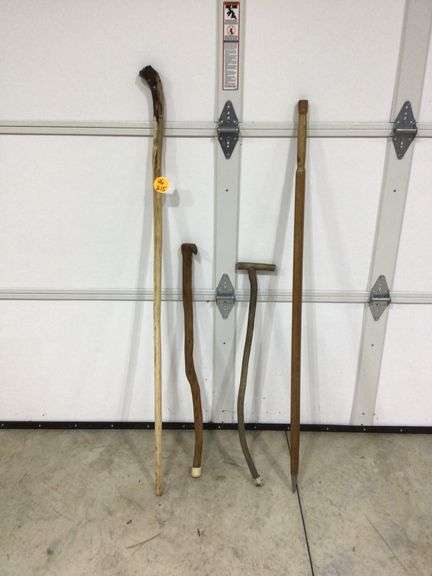 2 WOODEN CANES AND 2 WOODEN WALKING STICKS