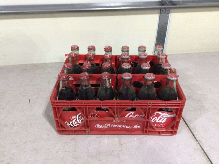 4 SIX PACKS COMMEMORATIVE MICHIGAN COCA-COLA BOTTLES IN PLASTIC COKE TRAY-MACKINAC ISLAND 100TH ANNIVERSARY, FRAKENMUTH, DETROIT TIGERS, AND RED WINGS