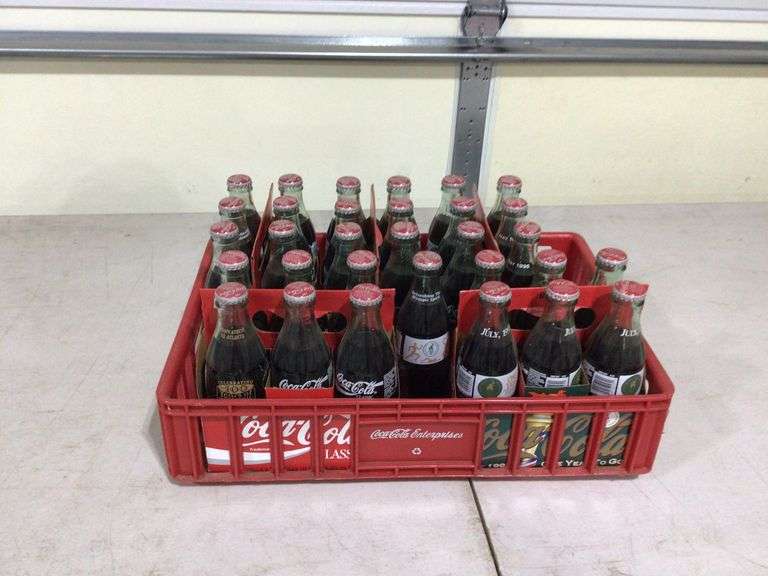 5 SIX PACKS COMMEMORATIVE ATLANTA OLYMPICS COCA-COLA BOTTLES IN PLASTIC COKE TRAY